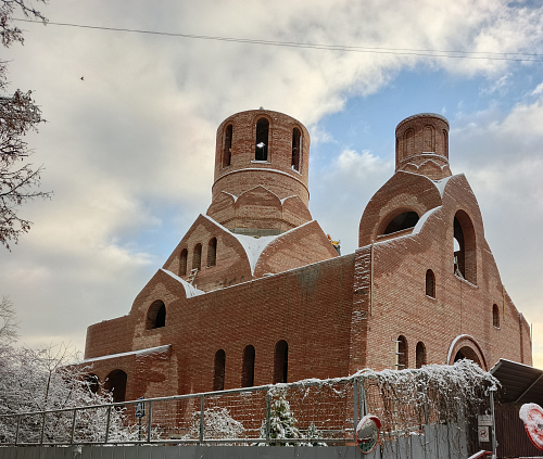 Имеется временный храм, строится основной храм.