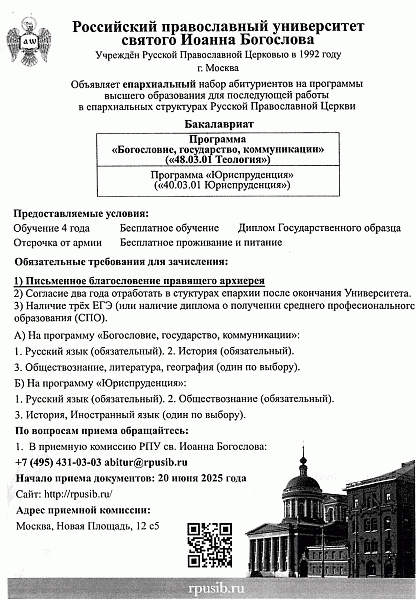 Российский православный университет святого Иоанна Богослова объявляет набор абитуриентов