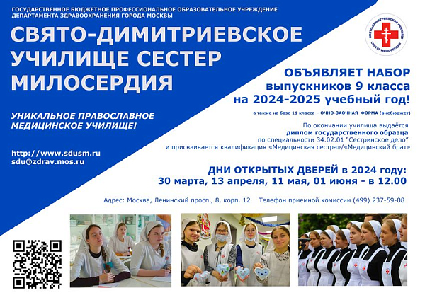 Свято-Димитриевское училище сестер милосердия объявляет набор