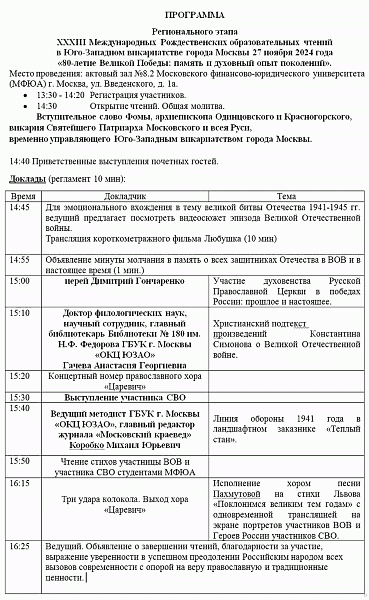Региональный этап XXXIV Международных Рождественских образовательных чтений «Просвещение и нравственность: формирование личности и вызовы времени»