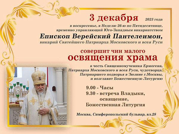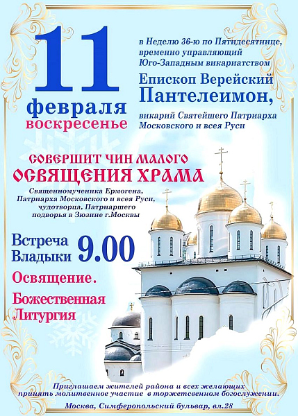 Чин освящения малого храма в честь священномученика Ермогена патриарха Московского и всея Руси, чудотворца, Патриаршего подворья в Зюзине