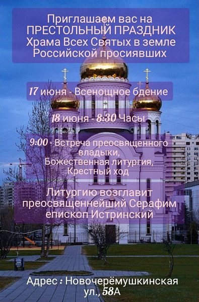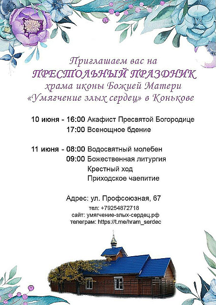 Приглашаем на ПРЕСТОЛЬНЫЙ ПРАЗДНИК храма Иконы Божией Матери "Умягчение злых сердец" в Конькове