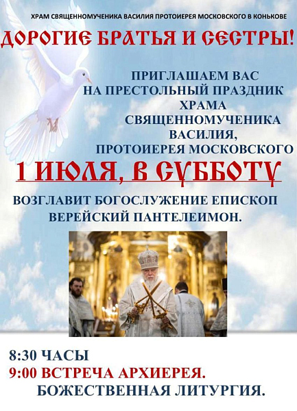 Престольный праздник храма Священномученика Василия, протоиерея Московского