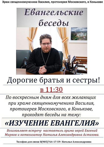 Беседы на тему «ИЗУЧЕНИЕ ЕВАНГЕЛИЯ» при храме священномученика Василия, протоиерея Московского, в Конькове