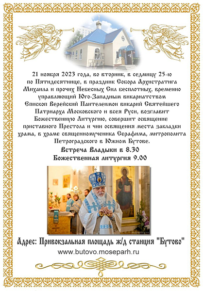 Освящение приставного Престола и чин освящения места закладки храма священномученика Серафима, митрополита Петроградского в Южном Бутове