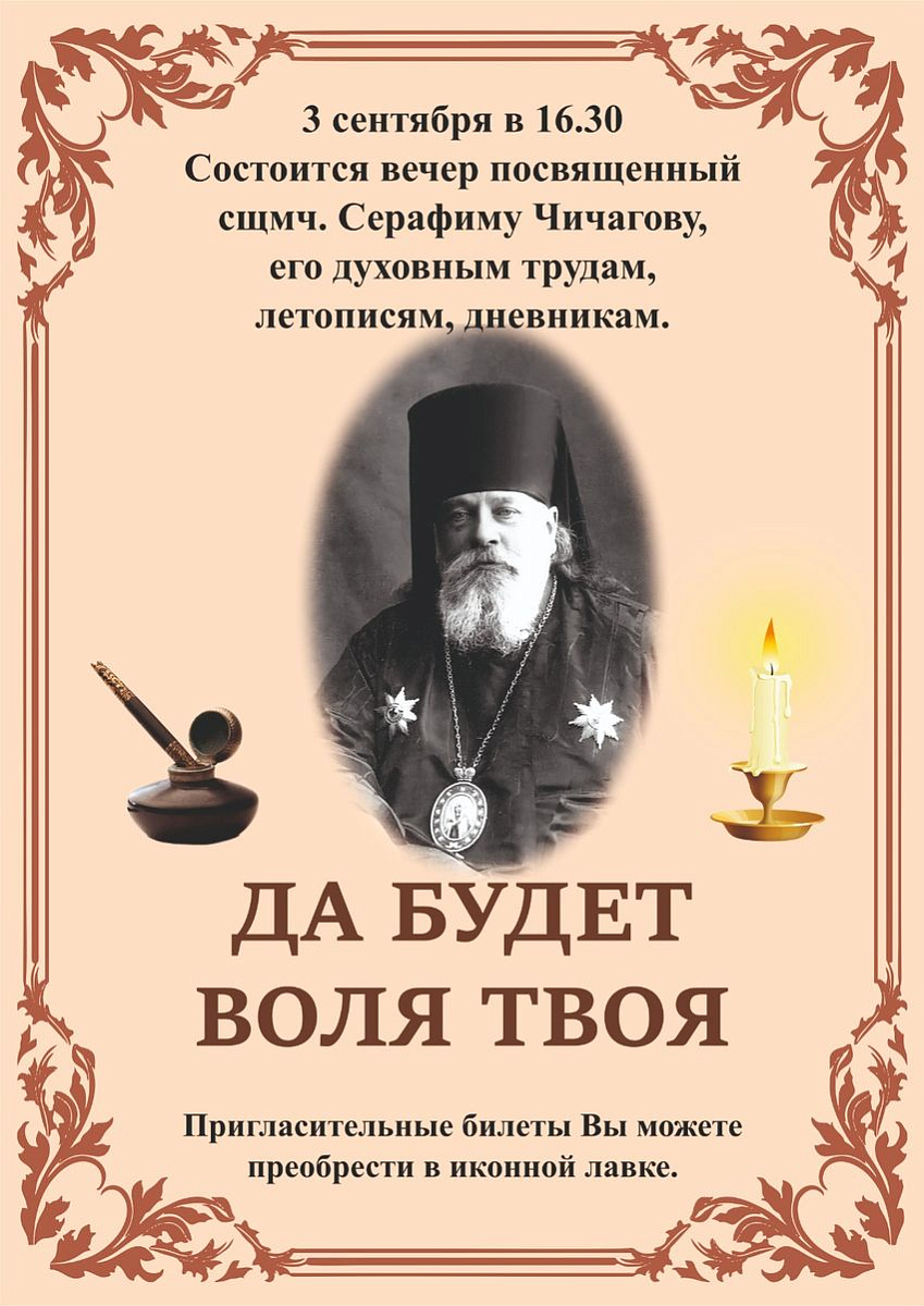 По благословению настоятеля храма сщмч. Серафима иерея Максима Глухих, 3 сентября 2023 года в Воскресной школе храма состоится вечер памяти священномученика.