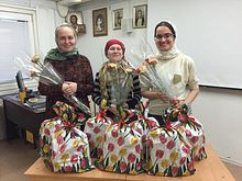 Представители храма праведного воина Феодора Ушакова в Южном Бутове поздравили членов организации «Дети войны» с Пасхой Христовой и Днем Победы