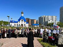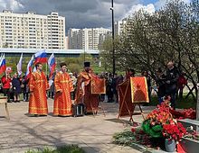 От храма священномученика Серафима, митрополита Петроградского, в Южном Бутове совершен Крестный ход к Памятнику-Обелиску погибшим в Великой Отечественной Войне войнам