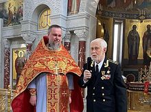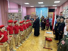 В День Черноморского флота России в храме святого праведного воина Феодора Ушакова в Южном Бутове состоялась церемония освящения и передачи нового кадетского знамени морскому кадетскому классу школы № 1161
