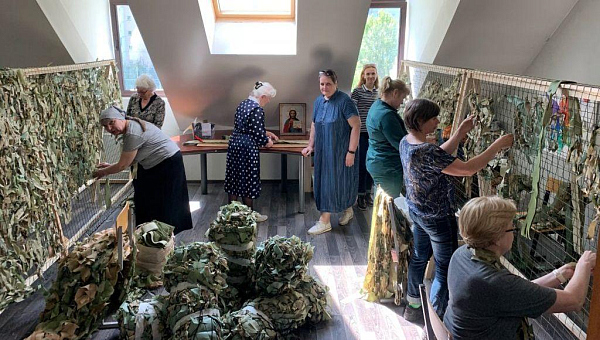70 маскировочных сетей сплели и передали на фронт волонтеры и прихожане храма Святителя Стефана Пермского в Южном Бутово