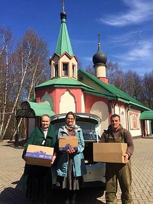 Добровольцы храма святых праведных Симеона Богоприимца и Анны пророчицы в Черёмушках собрали продуктовую помощь для беженцев Донбасса