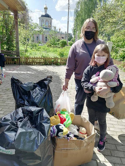 От храма великомученицы Анастасии Узорешительницы в Тёплом стане переданы одежда и продукты питания (26 апреля 2021)