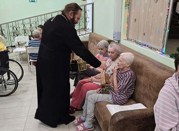 Приход храма Живоначальной Троицы в Конькове поздравил в предстоящими праздниками подопечных пансионата "Тепло и уют"