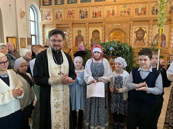 Воспитанники Воскресной школы храма равноапостольной Нины в Черемушкахпоздравили прихожан с Рождеством Христовым