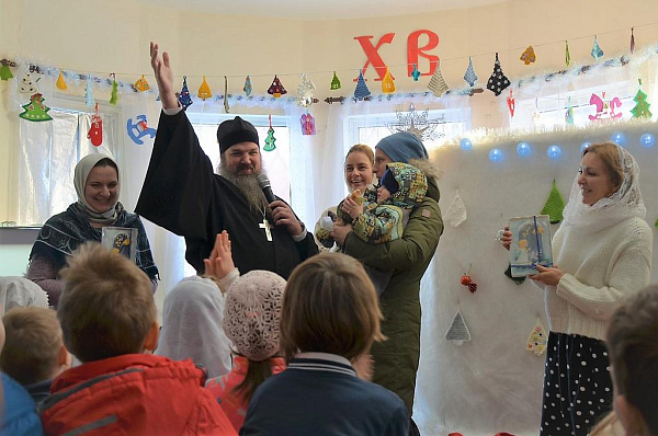 Настоятель с духовенством и прихожанами храма иконы Божией Матери "Отрада и Утешение" на Каховке поздравили детей из ГБУ «Мой семейный центр» в районе Зюзине с Рождеством Христовым
