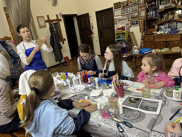 В Воскресной школе «Исток» храма Священномученика Ермогена в Зюзине состоялся мастер-класс по изготовлению открытки «Пасхальное яйцо»