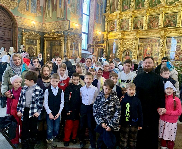 Ученики Воскресной школы и детского хора храма преподобной Евфросинии Московской помолились за Литургией