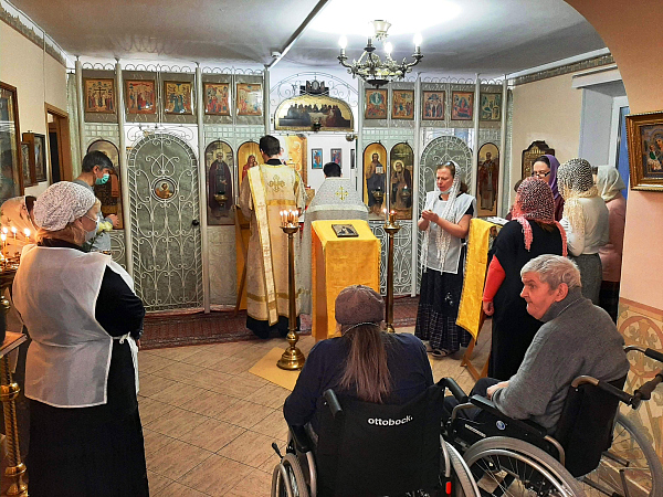 В храме преподобного Серафима Саровского при геронтологическом центре «Юго-Западный» совершена Божественная литургия в день Престольного праздника.