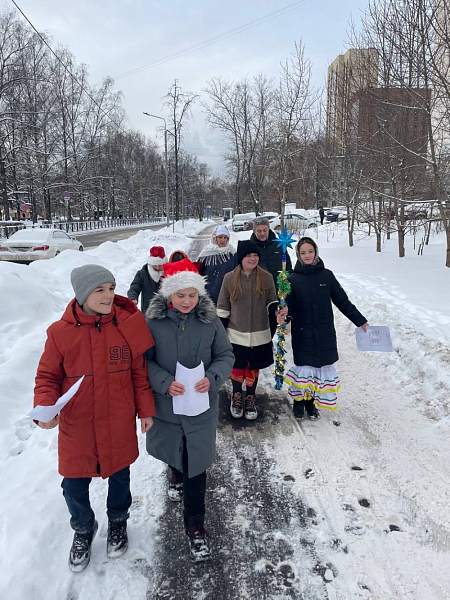 Старшие воспитанники воскресной школы при храме Святителя Стефана Пермского в Южном Бутово посетили жителей района со святочным колядованием