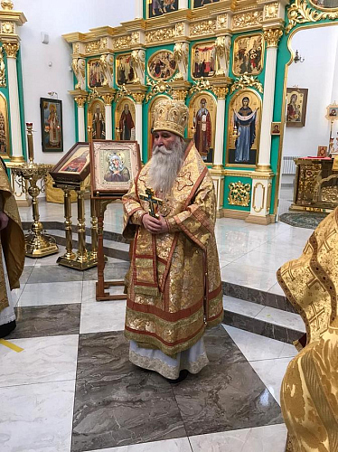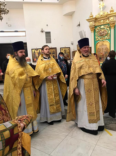 Богослужение возглавил Преосвященный епископ Дмитровский Феофилакт, викарий Святейшего Патриарха Московского и всея Руси Кирилла, управляющий Юго-Западным викариатством г. Москвы, наместник Андреевского ставропигиального мужского монастыря.