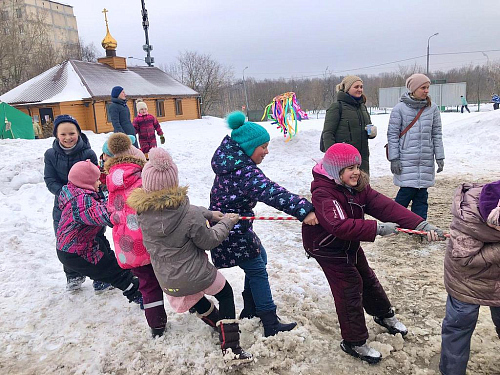 Педагоги и родители воскресной школы организовали игры для детей, хороводы и спортивные забавы.