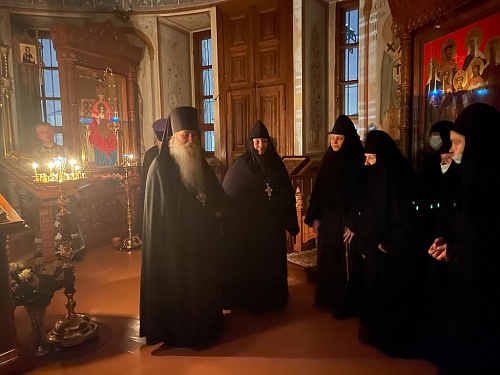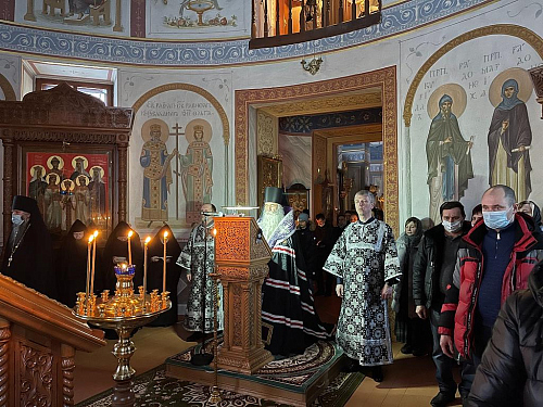 По окончании богослужения владыка Феофилакт обратился к игумении и сестрам со словом поддержки и назидания. Он поблагодарил сестер за труды и молитвы и пожелал благопоспешения Божия, как во дни Великого поста, так и во всей их монашеской жизни. Владыка подчеркнул, что на этом пути мы имеем множество образцов и благих примеров, посоветовав чаще обращаться к житиям святых: и преподобных, а особенно, и новомучеников. Весьма важно нам укрепляться примером их подвига, чтобы не дрогнуть во время испытаний.