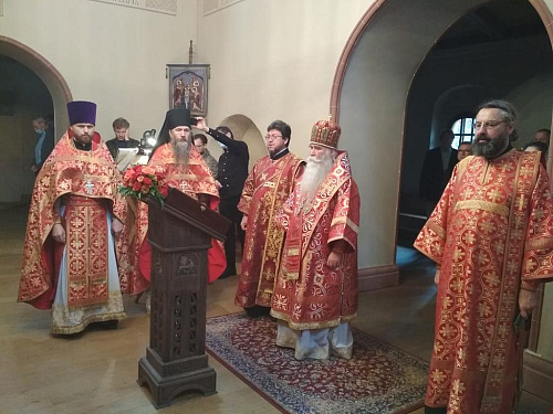 В этот день Преосвященный епископ Дмитровский Феофилакт совершил Божественную Литургию в надвратном храме, освящённом в честь небесного покровителя монастыря. По окончании литургии епископ Феофилакт произнёс слово, напомнив собравшимся о подвиге святого мученика Андрея Стратилата и его войска, а также об истории возникновения, развития и нынешнего возрождения монастыря. После чего все гости были приглашены на праздничную трапезу.