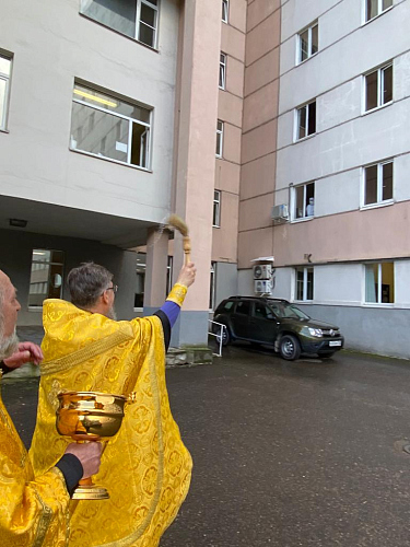 Также, настоятель окропил Святой водой территорию медстационара. Проведена миссионерская беседа с сотрудниками стационара.