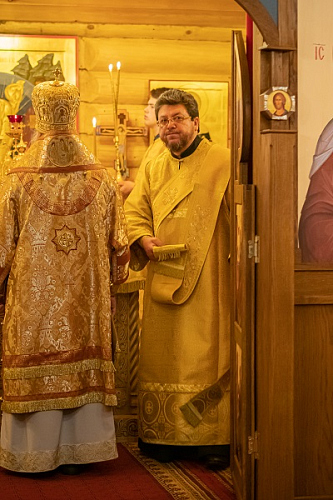 Епископ Дмитровский Феофилакт обратился к участникам богослужения с архипастырским словом, поблагодарил настоятеля за его усердные труды во благо Церкви и пожелал Божией помощи.