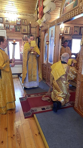 На Божественной Литургии владыке Феофилакту сослужили: настоятель храма Святителя Алексия иерей Виталий Никишин, протодиакон Николай Пянзин.