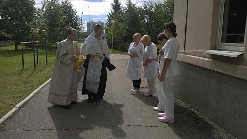 По просьбе главного врача медучреждения, Александра Ивановича Клячина, настоятель приписного храма «Неупиваемая Чаша» при наркологическом филиале №2, священник Виталий Никишин, совершил молебен о недужных. Также, настоятель окропил Святой водой территорию медстационара. Проведена миссионерская беседа с сотрудниками стационара на тему: «Божия помощь в исцелении».