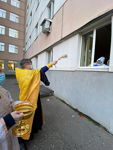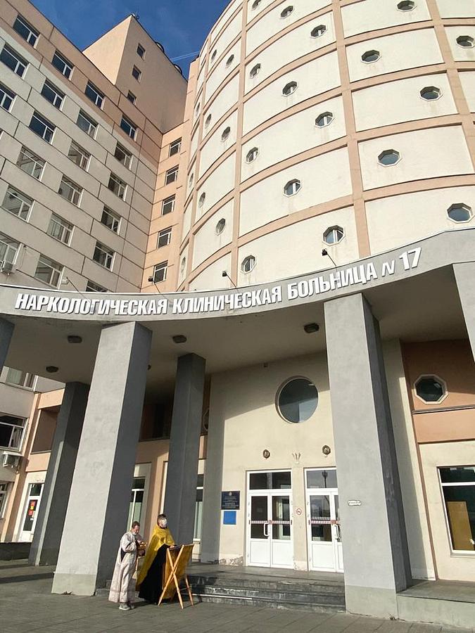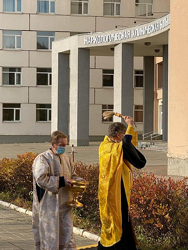 По просьбе главного врача медучреждения, Александра Ивановича Клячина, настоятель приписного храма «Неупиваемая Чаша» при наркологическом филиале №2, священник Виталий Никишин, совершил молебен о недужных. Также, настоятель окропил Святой водой территорию медстационара. Проведена миссионерская беседа с сотрудниками медствационара на тему: «О действии благодати Святаго Духа в исцелении больных COVID-19»