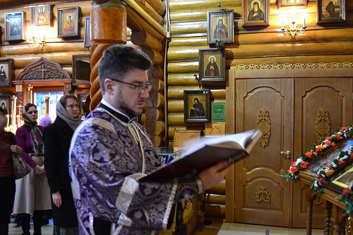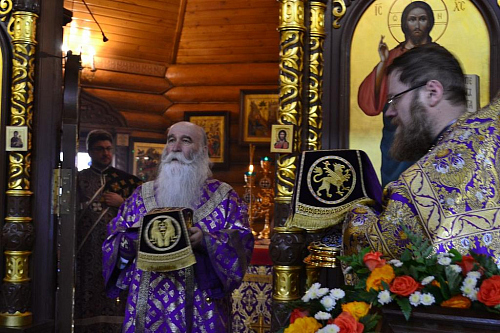 Преосвященному Владыке сослужили: иеромонах Феодор (Юлаев), клирик Московской Духовной Академии, иерей Алексей Петухов, настоятель храма Всех Преподобных Отцев Киево-Печерских в Старых Черемушках; клирик храма иерей Антоний Фукс, духовенство г. Москвы.