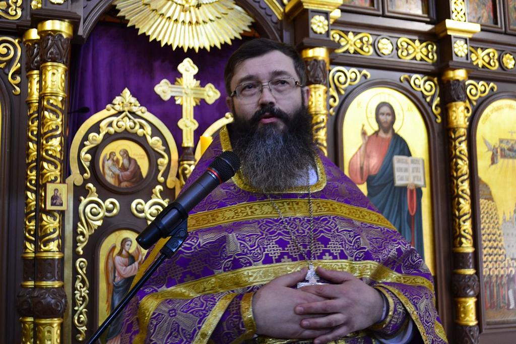 Настоятель храма, иерей Алексей Петухов, преподнес в дар Владыке написанную икону Священномученика Александра Орлова .