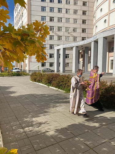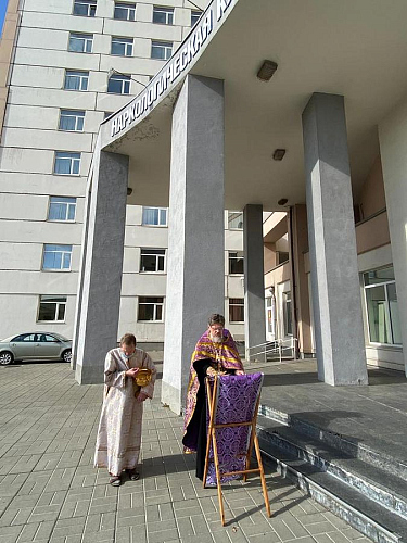 По просьбе главного врача медучреждения, Александра Ивановича Клячина, настоятель приписного храма «Неупиваемая Чаша» при наркологическом филиале №2, священник Виталий Никишин, совершил молебен о недужных. Также, настоятель окропил Святой водой территорию медстационара.