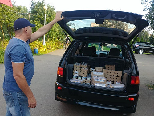 Гуманитарную помощь также отправили в православные приюты: детский приют «Покров» в деревне Яковлево и детский приют при Троицком храме г. Коломна (Щурово). Всего волонтеры соц. службы раздали 1250 кг молочной продукции.