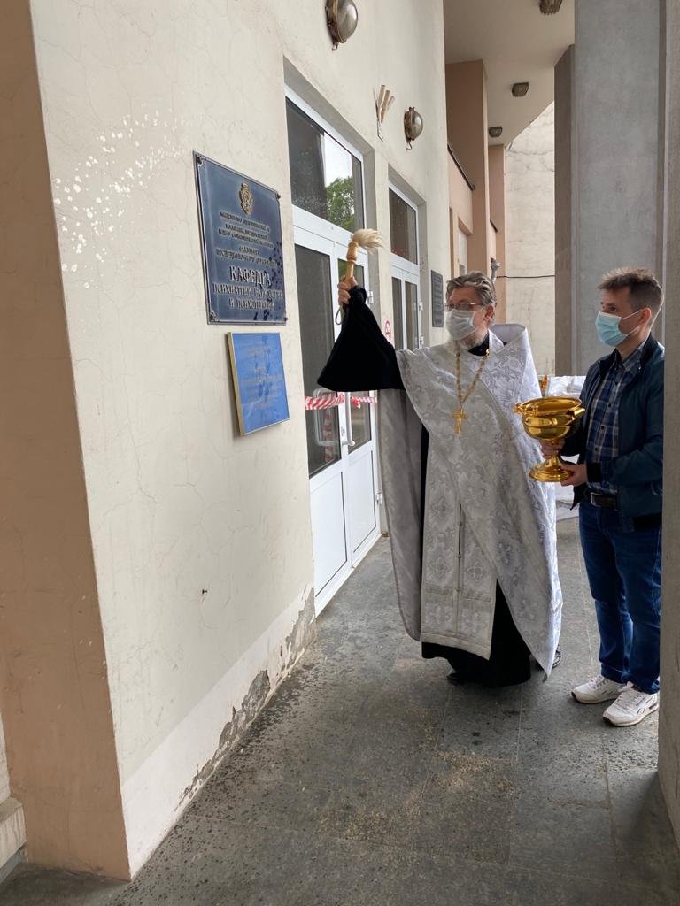 По просьбе главного врача медучреждения, Александра Ивановича Клячина, настоятель приписного храма «Неупиваемая Чаша» при наркологическом филиале №2, священник Виталий Никишин, совершил молебен о недужных. Также, настоятель окропил Святой водой территорию медстационара.