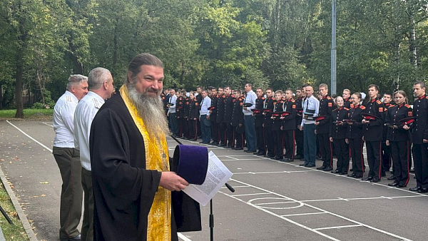 Настоятель храма Священномученика Ермогена в Зюзине принял участие в торжественном построении по случаю годовщины образования Кадетской школе МЧС Первого Московского кадетского корпуса