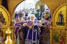 Святейший Патриарх Кирилл совершил утреню с чтением акафиста Пресвятой Богородице в Храме Христа Спасителя