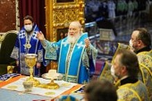 В день памяти благоверного князя Александра Невского Предстоятель Русской Церкви совершил Литургию в Храме Христа Спасителя в Москве