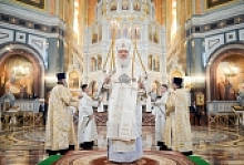 В праздник Преображения Господня Предстоятель Русской Церкви совершил Литургию в Храме Христа Спасителя