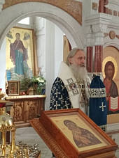 20.07.2020. Епископ Дмитровский Феофилакт возглавил служение Божественной Литургии в престольный праздник храма преподобной Евфросинии, великой княгини Московской