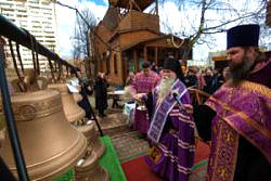 Епископ Дмитровский Феофилакт освятил колокола для строящегося храма священномученика Ермогена в Зюзине