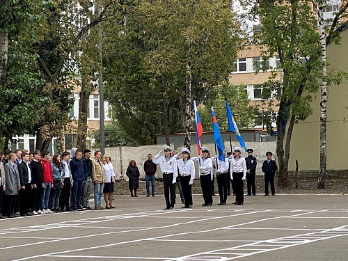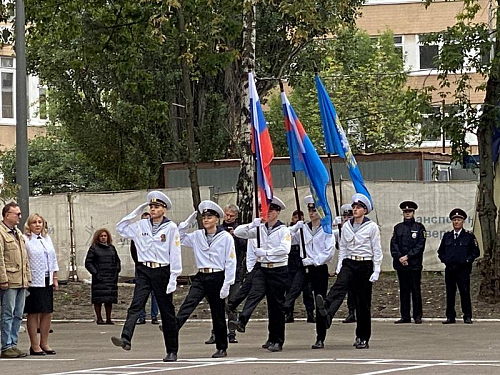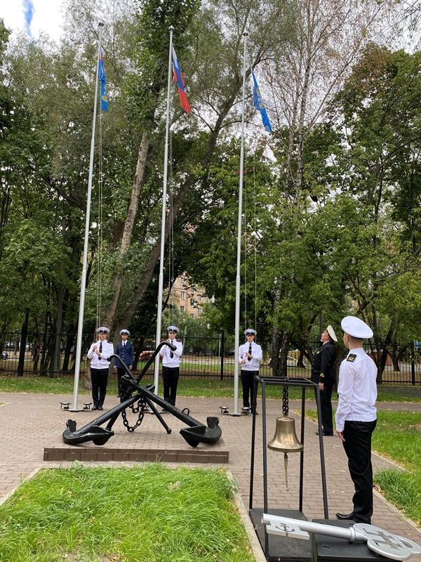 Флаговая группа Академии внесла на плац перед учебным корпусом флаги России, Морского и речного флота и Транспортного университета. Прозвучал гимн России, во время которого были поднят Государственный флаг Российской Федерации.