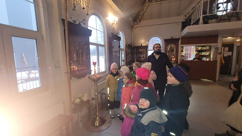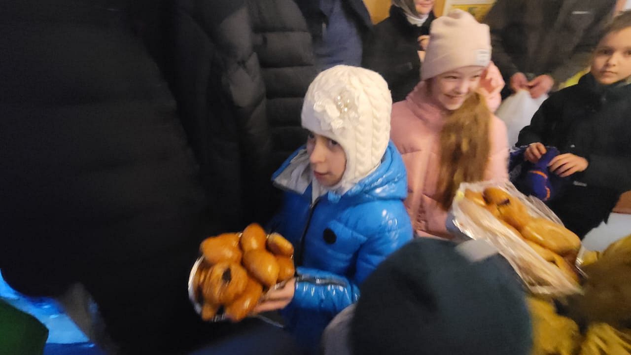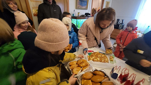 Воспитанники детского сада и их родители напекли пироги и праздничные печенья, которые привезли в храм для раздачи и поздравления