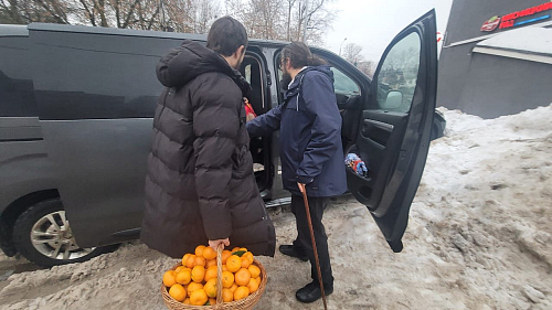 Далее от прихода, детям настоятель храма передал корзину мандаринов и поздравил всех с праздником!
