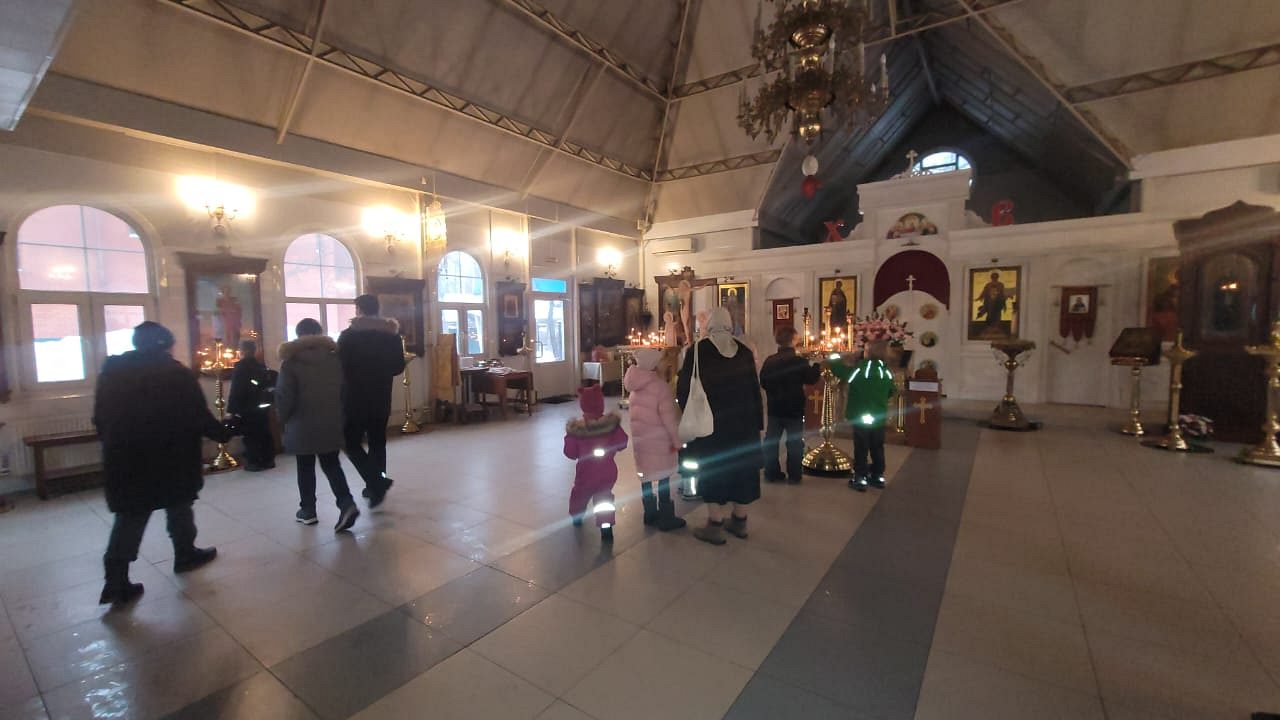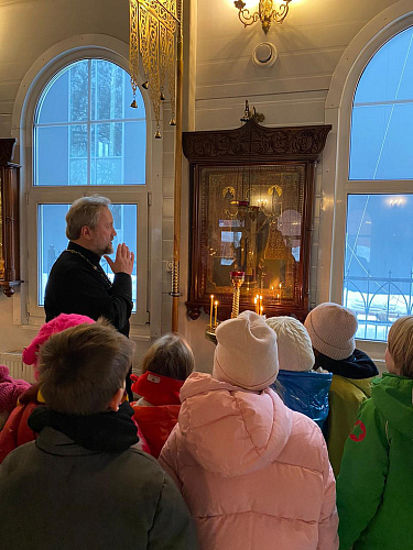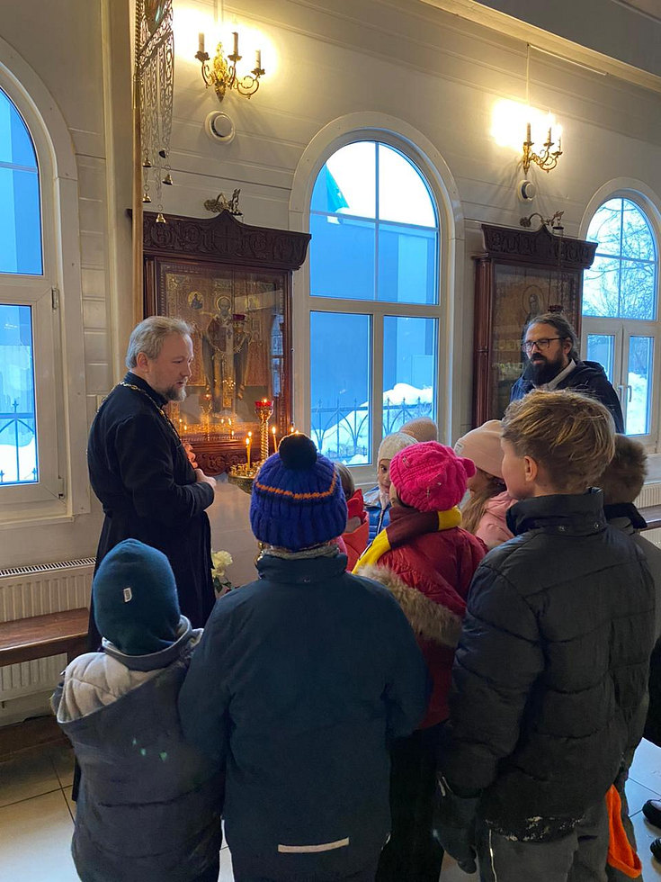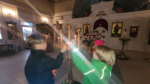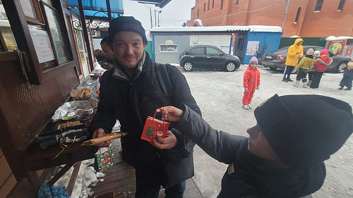 Детки сами вручали сладкие подарки бездомным. Далее участники акции прошли в храм, где настоятель раздал всем свечи. Перед иконой святителя Николая совершили молитву и поставили свечи, священник Максим Глухих рассказал детям о житии святителя Николая и о празднике.