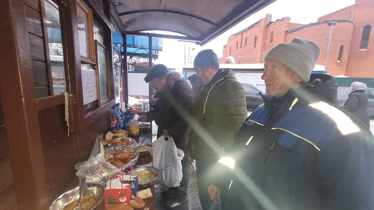 бедных, обездоленных, бездомных людей, приходящих в храм сщмч. Серафима за бесплатной, горячей едой.