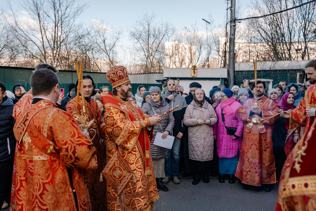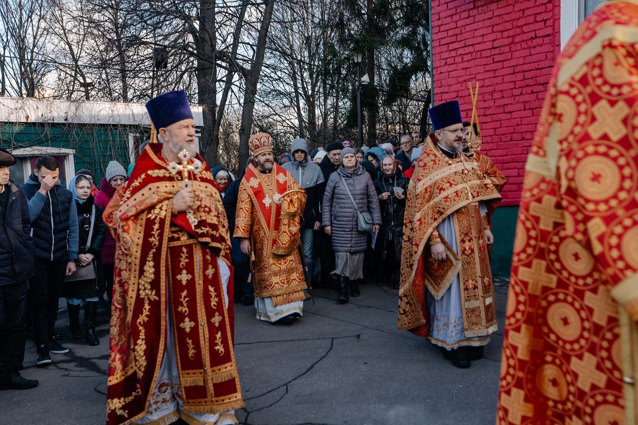 Его Высокопреосвященству сослужили: протоиерей Анатолий Кожа, Благочинный храмов Параскво-Пятницкого округа города Москвы, настоятель храма Великомученицы Параскевы Пятницы в Качалове, протоиерей Александр Зорин, настоятель храма Казанской иконы Божией Матери в Теплом Стане, иерей Николай Кривотулов, клирик храма святых благоверных князей Бориса и Глеба в Зюзино, диакон Николай Платонов, клирик Богоявленского кафедрального собора в Елохове, клирики храма и духовенство Юго-Западного викариатства.