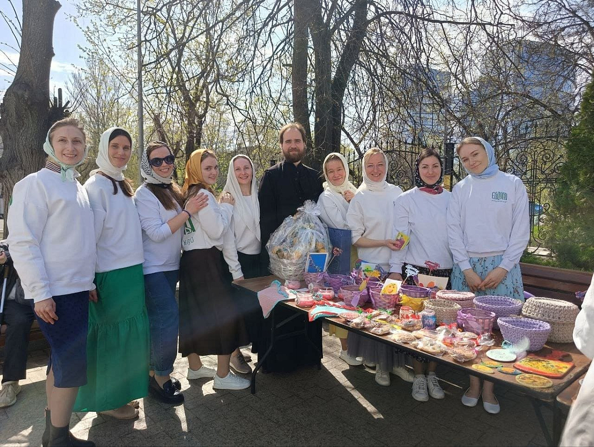 Атмосфера ярмарки была наполнена теплом и радостью. Участники клуба поздравили настоятеля храма епископа Алексия с наступающим праздником Пасхи, что добавило еще больше значимости этому событию.
